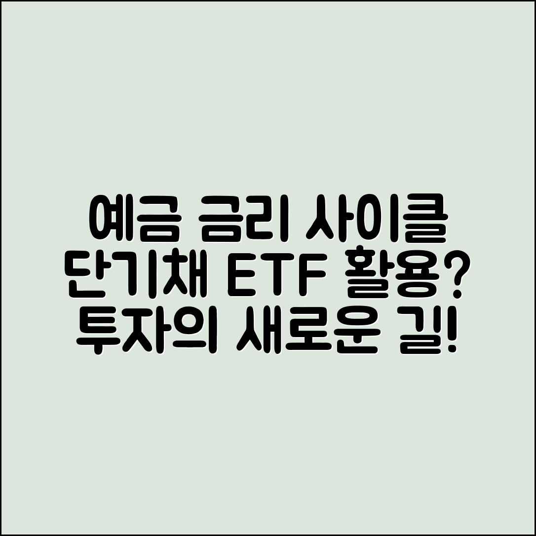 → 예금 금리 사이클을 활용하기 위해서는 금리 상승기에는 단기채 ETF에 투자하고, 하락 전망 시에는 안정적인 수익을 추구하는 예금을 고려하는 것이 좋습니다. 이처럼 상황에 맞는 전략을 세우는 것이 중요합니다.